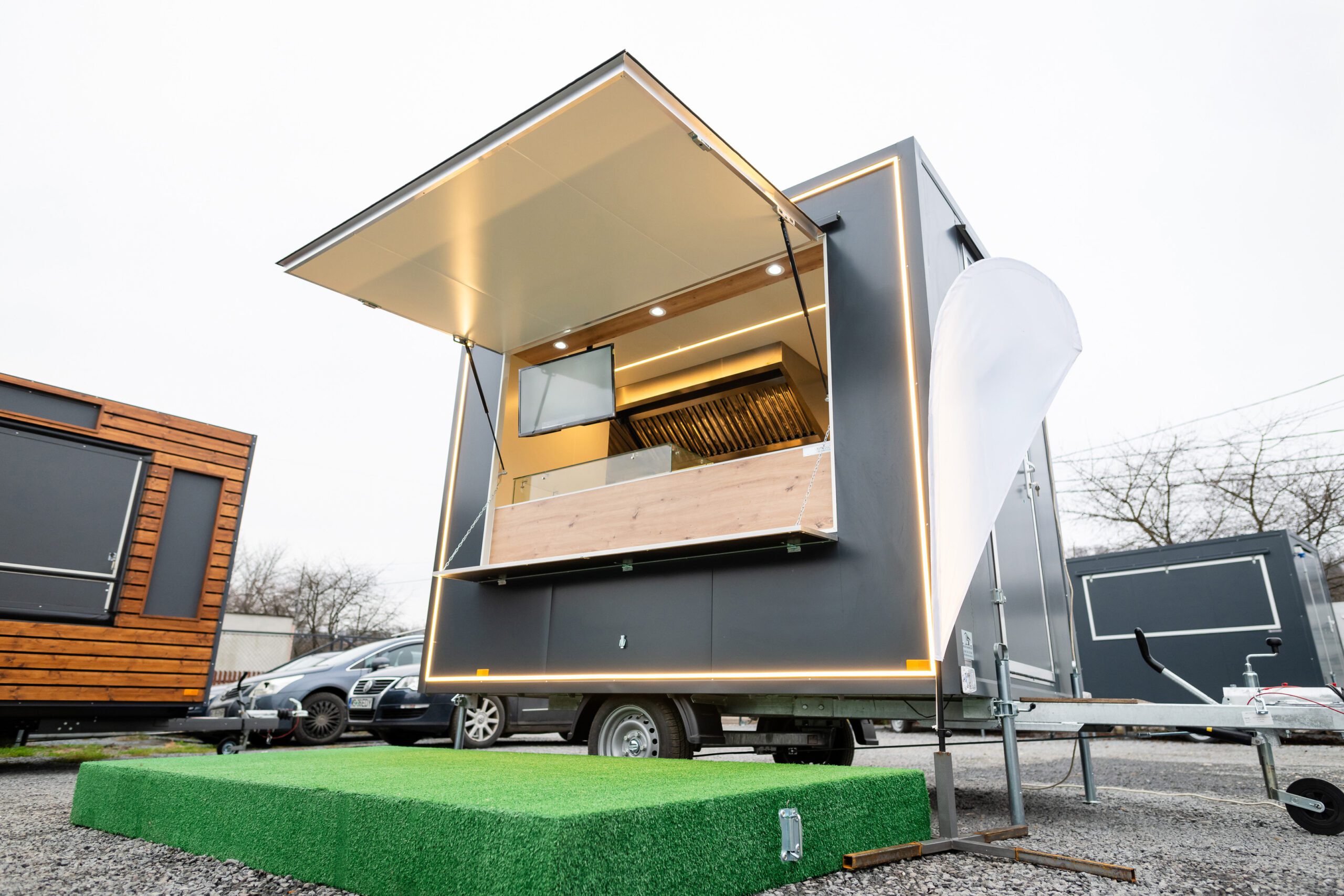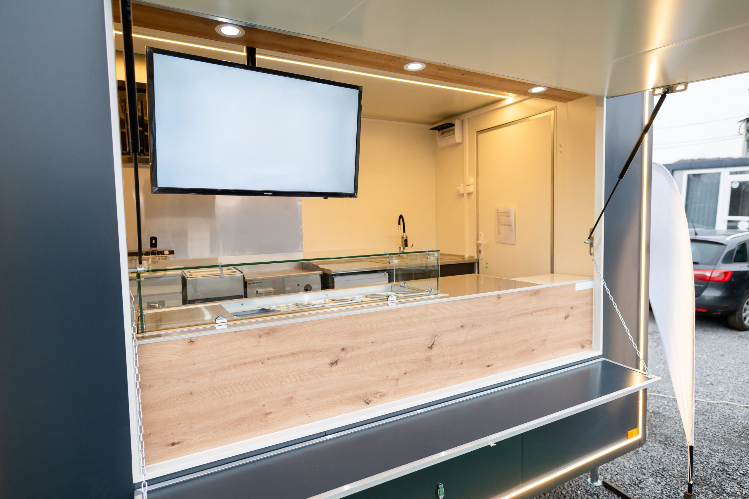 Wir bieten Ihnen einen 3D-Entwurf Service, um Ihren zukünftigen Imbisswagen zu entwerfen. So können Sie den Buffetwagen Ihrer Träume kreieren und ihn auf sehr praktische und effiziente Weise einrichten. Wir können die Innenausstattung Ihres Wagens nach Ihren Wünschen gestalten und bieten Ihnen eine breite Palette von Ausstattungen und viele zusätzliche Optionen, um Ihren Wagen zu personalisieren.